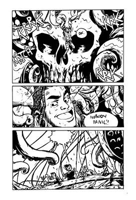Long story short, as I was organizing and archiving my original comic pages, I came across the 120 or so pages of the unpublished East Coast Rising volume 2. Flipping through it, I thought man, what a shame, all that work. And the worst part, that volume 1 ended on a cliffhanger! Nobody will ever know if they defeat the Suffocating Death, or are consumed (that would have made a quick end to the series!) to quell it's seemingly endless appetite (it already ate Mr. Snuggles, the giant, flesh-eating turtle...)