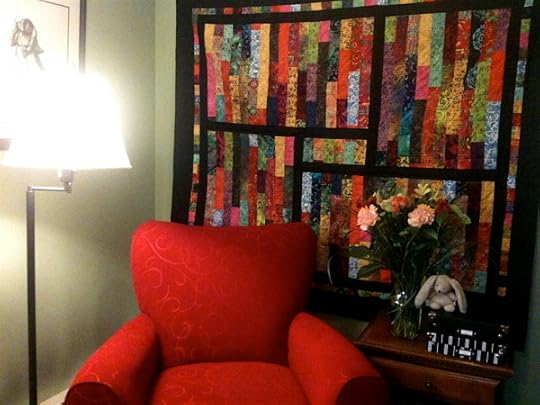 So I'm here in my office (the awesome quilt is from my mom) and working away. Can't wait to hear how your projects are going!