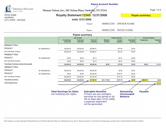 Here's a sample of a royalty statement (not mine and not my publisher) that I think has some really helpful highlights on it.