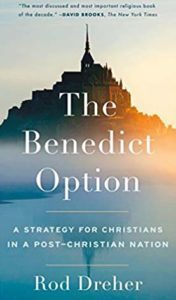 we’re not 100 percent in agreement. I’m excited about reading The Benedict Option because it promises a path to living a faith-filled life in an increasingly secular world. It seems to have a positive message based on the book jacket copy: “… learn not just to give a resolute ‘no’ to the false gods of this...