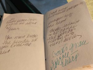 I take this little notebook with me to Mass. I don’t do it in case I get some bright idea for a column or essay, or to work on my to-do list before things get started. No, it’s because of St.