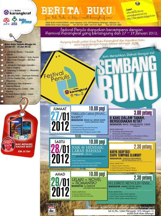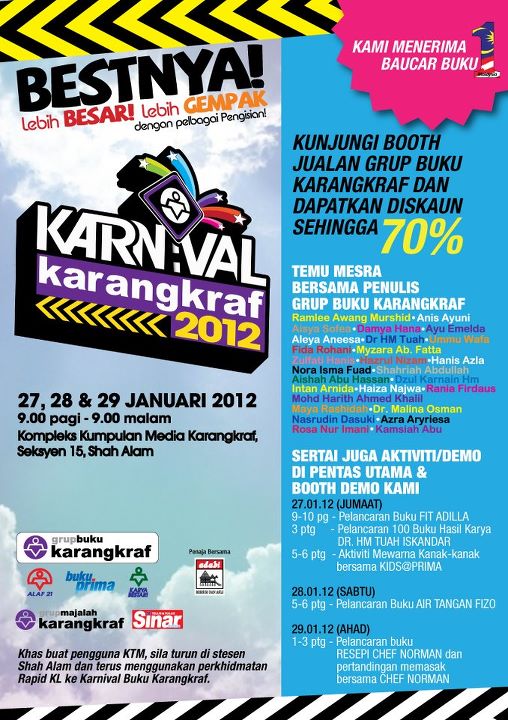 Nak beli buku dengan diskaun hebat? Jom ke Karnival Karangkraf pd 27 - 29 Jan 2012! Insya Allah, AE akan ada d sana @ 28 Jan (Sabtu).