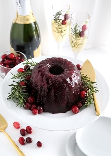 This slightly boozy cranberry sauce is tart and delicious with savory fare. It can be served as sauce in a bowl, or if you're looking for a more formal presentation, you can mold it in a decorative pan as I have.