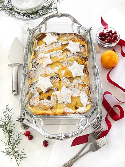 Last week I purchased a loaf studded with candied citrus and dried cranberries. I felt it was destined for traditional French toast, until I remembered a favorite recipe for baked french toast.
