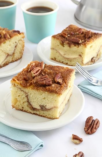 This recipe meets all my criteria for great coffee cake. It's scratch-made with streusel topping, nutty and fragrant with cinnamon. It's not overly sweet, and it has a ribbon of sweet cream cheese running through its center.