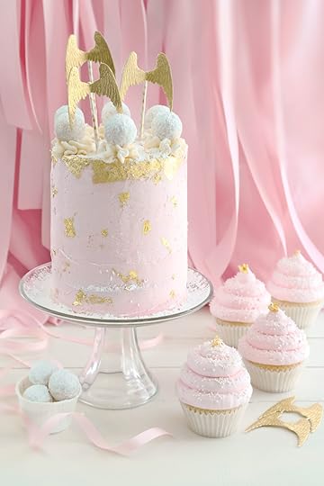 To me, gold leaf's unplanned shapes and sparkles is what makes it special. I especially love the effect it creates on pink buttercream. It looks like something Marie Antoinette would have on her gilded dessert buffet. I found some gold angel wing Dresden trims that I'd been saving for something special and they seemed like a good fit for this bubbly-inspired cake.