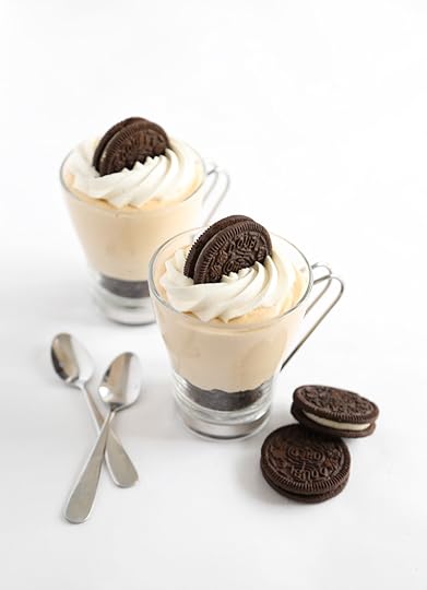 These peanut butter pie cups are my first in this series. They are rich and decadent and the Oreos provide a nice crunchy contrast to the smooth filling.