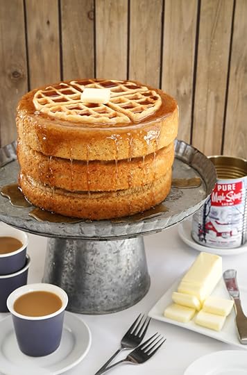 My husband calls me 'Breakfast Princess' and although that sounds like a cute pet name, he's really referring to the fact that I make breakfast for dinner about 3 times a week. Sometimes I make a quick healthy version of breakfast and other times I go all out. Many nights we have puffy Belgian waffles, and that's what inspired this cake!