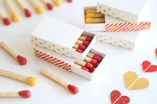 If you're looking for a unique sweet gift for your Valentine this year, then this may the ticket! These edible matchsticks are so easy to make and even more delightful to give - especially when the cookies are packaged in matchstick slider boxes. The candy coating on the cookies has a pinch of ground cayenne pepper, so they bring a little heat to the party, too!