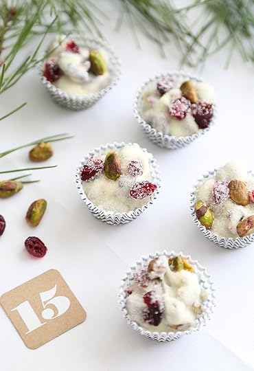 If you've been keeping up with my Christmas recipe advent, then you may be thinking to yourself "cranberries and pistachios - again ?!". Yep. I can't quit them, it's true. There's something especially wonderful about tart dried cranberries in smooth white chocolate.