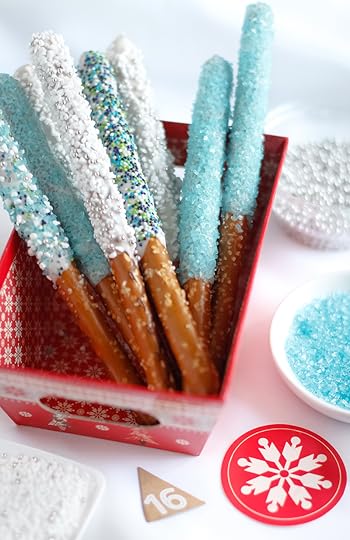 I've been making these salty-sweet pretzel sticks for years. Now that I think about it, I've been making them for more than a decade! When I worked an office job years go I remember placing a huge tray of these in our break room. About two hours later they were all gone - all except the stick-ends of a few pretzels. Someone had eaten the candy-covered part and left the remaining pretzel sticks on the candy tray - who does that?! (So funny!)
