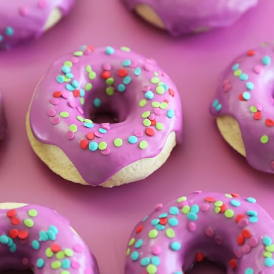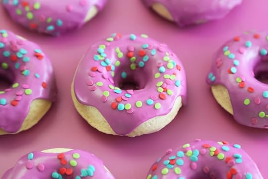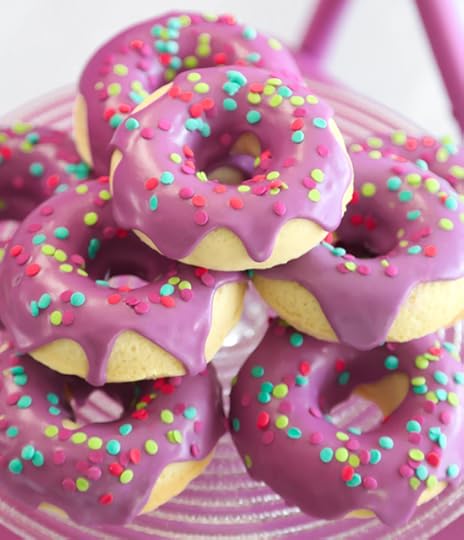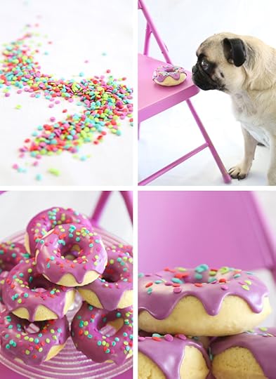 January is a funny time, because just as you're getting a fresh start and looking at things anew, the world outside looks grey and dismal. Something about that doesn't exactly match up. Although there are days when I prefer a sky that looks like wet cement (accompanied by snowflakes, hot tea and fuzzy socks), there are other days when I long for a colorful landscape. On those days I am prone to create my own scenery - like a mountain of purplish-pink doughnuts with the prettiest confetti sprinkles.