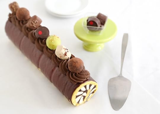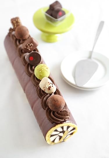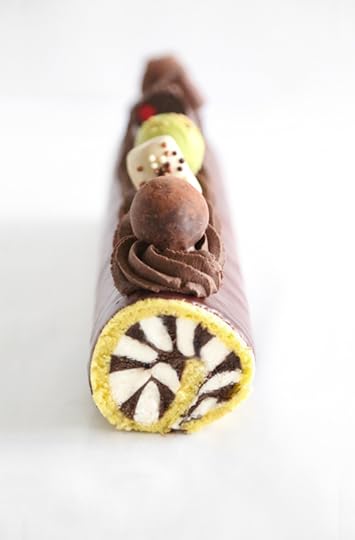 Sponge roll1/2 cup egg yolks (about 7 yolks from large eggs)3 tablespoons/ 1 1/2 ounces granulated sugar1 tablespoon vegetable oil1/3 cup/2 ounces cake flour, sifted1/4 cup egg whites (about 2 egg whites from large eggs)Confectioners’ sugar for dustingBeat the egg yolks and sugar together in a standing mixer on high speed until light in color, about 5-8 minutes. Gradually add in the oil. You can tell the mixture is properly whipped when it has the appearance of lemon pudding.Gently fold in the cake flour using a large rubber spatula. Set aside.Beat the egg whites in a separate bowl until soft peaks form. Gently fold the beaten egg whites into the yolk mixture. Preheat the oven to 350°F. Grease a 10x 15-inch baking sheet with vegetables shortening and line it with parchment paper (the greased surface helps the paper to stick to the pan). Carefully spread the mixture in an even layer over the parchment with an offset spatula.Bake for 8 to 10 minutes, or until the cake just starts to brown around the edges. The cake may look glossy and underdone in the middle, but looks can be deceiving. Check the cake’s center by pressing your finger on the cake. If it springs back, it’s done. Be careful not to over-bake this cake, or it break into pieces as you try to roll it.Let the cake cool slightly. Run a knife around the edge of the pan and turn the cake onto a work surface dusted with powdered sugar (put a piece of waxed paper down first and clean-up will be a snap). Peel off the parchment paper. Trim the brown edges away from the cake. Let the cake cool completely.Pipe spaced lines of chocolate frosting across the length of the cake. Leave just enough space to allow for same-sized lines of white icing between the chocolate icing. Pipe the white frosting between the chocolate rows, filling the gaps completely. You should have leftover chocolate frosting, reserve it for later use. Gently begin to roll the cake, starting at a long side, pushing it forward with your fingers. Roll the cake up completely and wipe away any excess frosting that gets squished out during rolling. Place the cake roll on a large sheet of waxed paper (or parchment) and roll the cake up into the paper. Chill the cake in the freezer until firm.