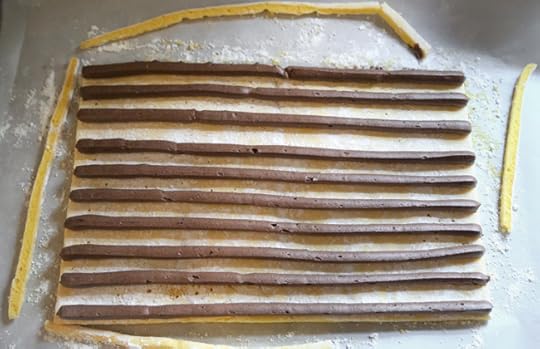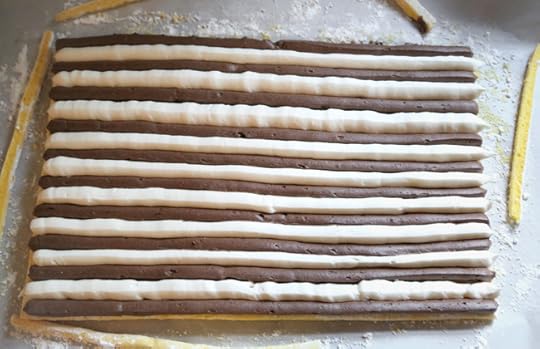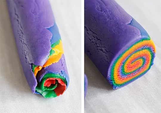 log. While rolling the dough, the violet portion (which will be on the outside of the roll) may want to
