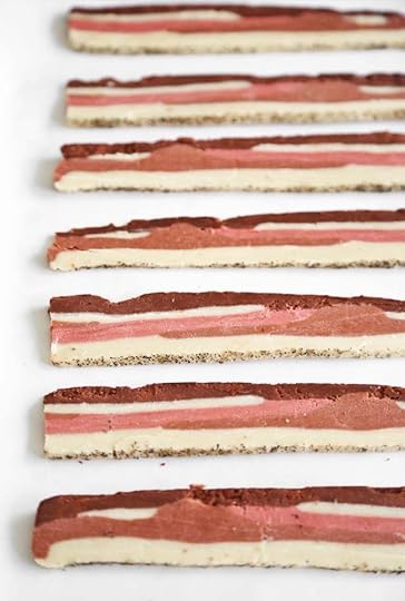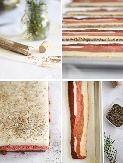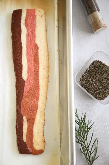 How fun are these streaky bacon slices? I learned how to make bacon cookies from Jennifer when she made bacon sugar cookies. I was happy to find the technique also works with shortbread dough. If you're into making your cookies look like bacon too, then be sure to take a look at her dough stacking technique. I followed it loosely, and was pleased to find my cross section of shortbread looking so... bacony!