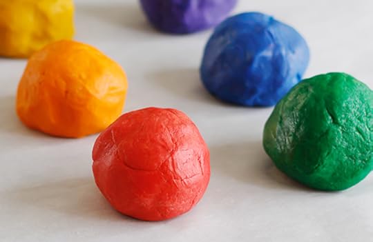 Divide the dough into 6 equal portions. Add one portion of dough to the bowl of a stand mixer (with paddle attachment) and tint with the red food color. Add 2 tablespoons of flour and mix to combine. The dough should not be sticky and resemble the consistency of soft play-doh. Add more flour if needed. Repeat process with remaining dough pieces, food color and flour.