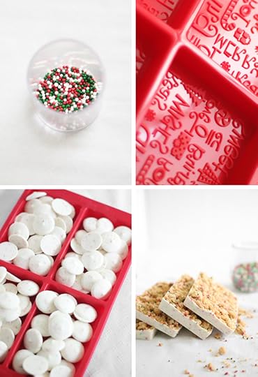 They also sent the cutest candy bark mold imprinted with Christmas greetings. I think I'd rather get candy bark than a Christmas card, wouldn't you?
