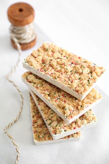 Who doesn't love candy bark? There must be a million different ways to vary the confection and I want to try them ALL. I created this version when Wilton sent me a bag of sugar cookie-flavored candy melts. Boy, are those things good! I ate one or two (or five) right out of the bag.