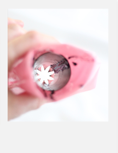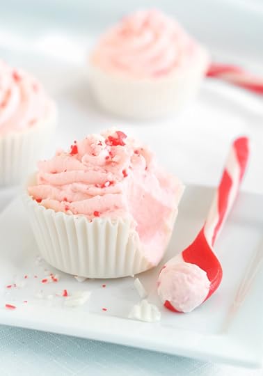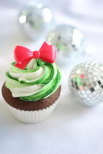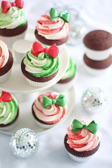 I gave the frosting a candy stripe with red and green gel food color painted on the inside of the piping bag. I think next time I make these, I'll add a little peppermint extract so the flavor matches the appearance.