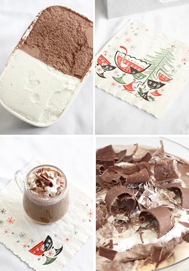 I decided to display some of my most-loved vintage party napkins beside this punch. I collect mid-century cocktail napkins, and I'm seriously stingy about using them. I only bring them out for special occasions, and apparently, when chocolate punch is being served (smile).