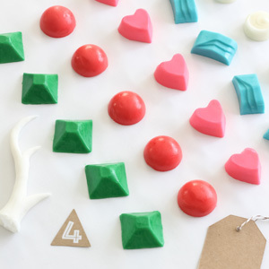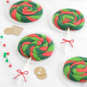 For the buttons, roll the red and green fondant flat. Cut circles using the #3 round decorator tip (it measures approximately 3/4-inch). I used a 1/2-inch magic marker cap to make a button-like impression in the fondant, but you could use any pen cap or even a chapstick lid. Use the #3 piping tip to punch four button holes. Allow the buttons to dry until firm, about 3 hours. Attach them to the stockings with a dot of corn syrup.