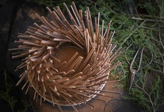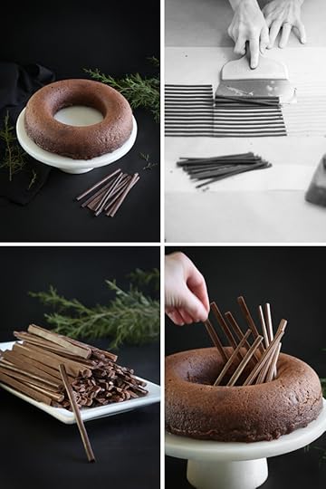 What do you think of this cake with quills? I'd seen a similar cake in a bakery, and decided to make my own version at home. It reminds me a little of the winter treescapes right now - a whole lot of bare limbs jutting towards the sky. Chocolate sticks can be purchased online, but because this cake requires quite a lot of them, I made my own. It's not difficult, and if you have the tools, it's totally beginner friendly. Another great thing to learn in 2015 (if you haven't already) is how to temper chocolate. You can find my tutorial here with last year's Etsy post for Red Velvet Bonbons. But if you're not inclined to temper, then an excellent substitute is Ghirardelli Chocolate Melting Wafers.