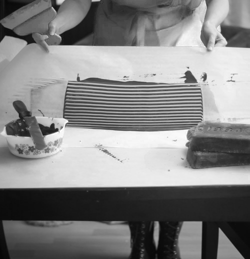 Roll the pink fondant out to 1/4 inch thickness; use the quilt pattern roller to emboss the fondant.