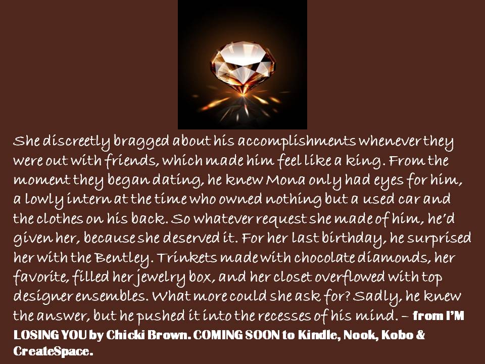 As an author, I don't bend to the whims of the reading public, but I do listen to those with whom I've partnered to help me create a story that makes sense and is a pleasurable read. As a reader, I've come across some books where I didn't particularly like the hero or heroine, but as I continued reading my opinion changed. I've also read books where one of the main characters irked me so badly I put the book down and never picked it up again. I don't want the latter to happen with those who buy I'M LOSING YOU, so I spent extra time tweaking Mona's personality and changing the way I've written some of the beginning chapters.