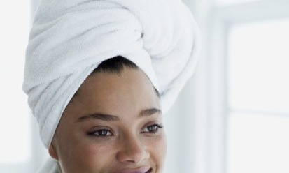 Wash your hair once with cucumber and sage shampoo with 43 added vitamins. Wash your hair again to make sure it's clean. Condition your hair with grapefruit mint conditioner. Wash your face with crushed apricot facial scrub for 10 minutes until red. Wash entire rest of body with ginger nut and jaffa cake body wash. Rinse conditioner off hair. Shave armpits and legs. Rinse off. Turn off shower. Squeegee off all wet surfaces in shower. Spray mold spots with Tilex.. Get out of shower. Dry with towel the size of a small country. Wrap hair in super absorbent towel. Return to bedroom wearing long robe and towel on head. If you see husband along the way, cover up any exposed areas.