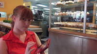 See that!She bolted for it! Alas... my smile hath scared off 'leh grumpeh cat'.We happen to have a secret weapon while at BEA