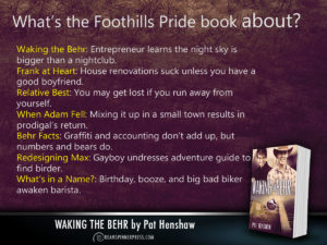 First, LOL at some of the tweeviews! Let’s see. Here are mine for the Foothills Pride series: