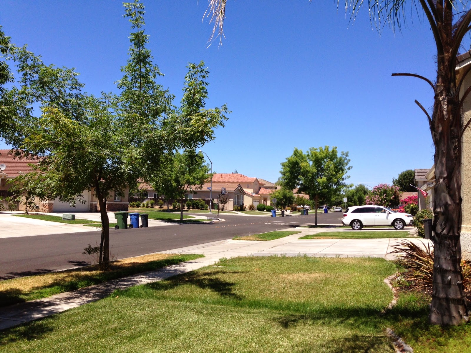 Here at home, though, it's hot. And booooooring. I live among subdivisions of beige stucco houses. Block after block after block of this: