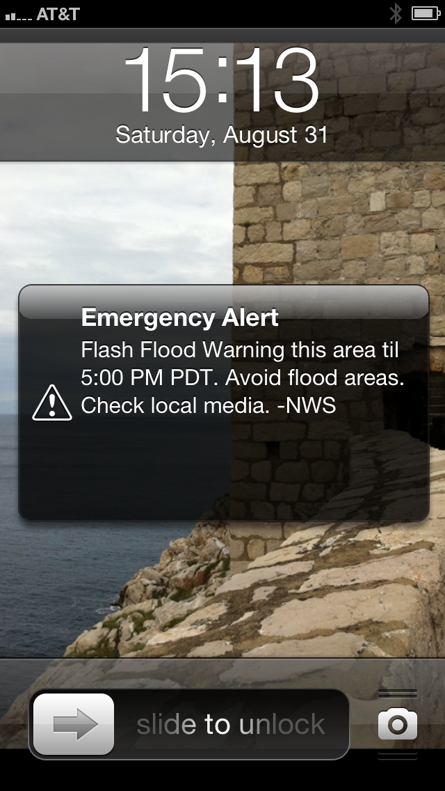Nowadays, the dam's a pretty safe place, I guess. Although my phone received this alert when we were literally atop the dam: