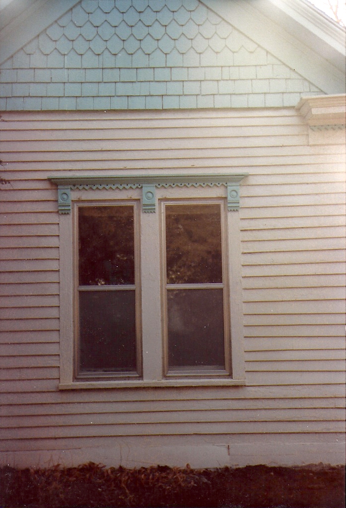 Jude and Mac get to know each other while painting and prepping Mac's new home. His house was based on the house I lived in in Lincoln, Nebraska. It was a cute little thing built in the 1880s. And yes, the living room walls really were hot pink when we bought it. Here's what the outside of my living room looked like: