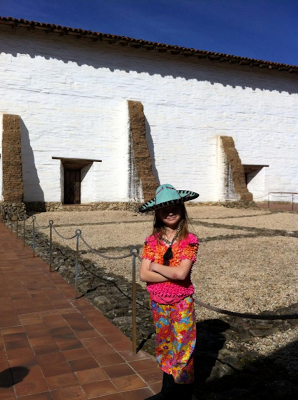 Saturday! Along with a signficant proportion of other parents of 4th graders in California, we spent the day at a Spanish mission. Mission San Jose in our case. We'd never been to this one. It's not the most exciting of the missions in Alta California, perhaps, but it's still interesting. Here is my daughter: