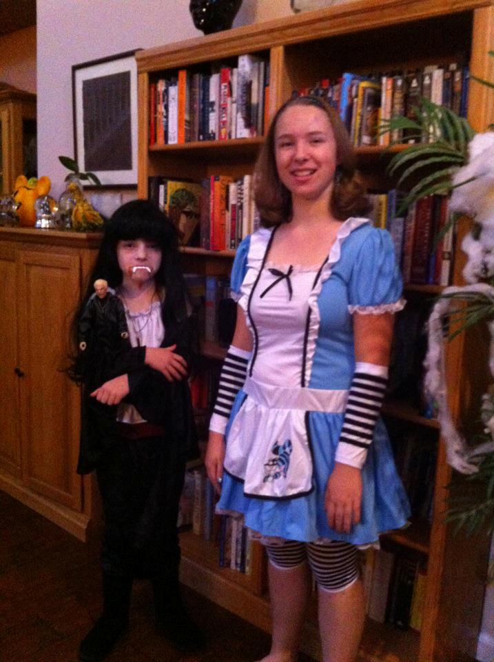 Here's what Halloween looked like at my house. Can you identify which character my younger daughter is portraying so frighteningly?