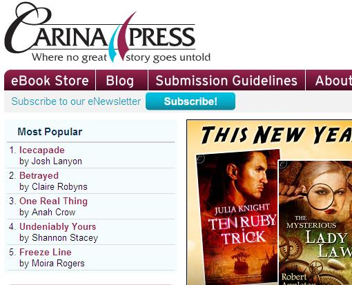 (A) Heh, Betrayed finally made it onto the Carina Press popularity list (at #2) I had to cut and paste quickly before it slipped right off, lol. They say that the internet is forever, so here it is for the sake of prosperity