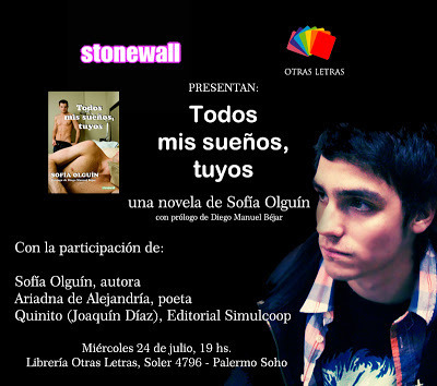 Como ya se habrán enterado lxs que me sigan por Facebook (agréguenme, no muerdo), este próximo miércoles es la presentación de Todos mis sueños, tuyos en la librería LGBT Otras Letras. El flyer estuvo circulando desde la semana pasada. Desde ya, obviamente les agradezco a Claudio y Aldo, los libreros, y a Adriana (Ariadna de Alejandría), una amiga poeta; y a Quinito, editor y escritor, que van a hablar acerca de Alexis.