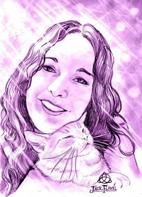 Este dibujo tan lindo me lo hizo mi amigo Jack Flamel, basándose en una foto que tuve de perfil hace unos meses :) Soy yo con mi gatito Sam. ¡Muchas gracias, Jack! Para ver más de la obra de este genial artista, pásense por Monsieur Flamel, su página de Facebook. Jack tiene un estilo muy gótico y oscuro, me hace acordar mucho a Kaori Yuki, la mangaka de Angel Sanctuary.