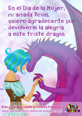 Otro regalo que preparamos fue esta postal, con ilustración de Jimena Takewind. Los personajes que ven ahí son los protagonistas de Bron y el dragón, un cuento de temática trans. Bron es una princesa transexual y me pareció una idea genial que ella protagonizara la postal, junto a su novio, el dragón Absalón :)