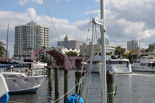 I see my friend the crab fisherman and I wave. The last commercial fisherman on Fort Lauderdale's New River. And so it continues, with me typing and checking the passing traffic every time I hear the bridge bells ring.
