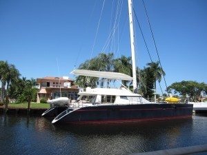 That hasn't stopped me from lusting after bigger boats. When you live in Ft. Lauderdale on the waterway, you see nice boats every day. I'm not a big catamaran fan, but this one which is docked two blocks away from us makes my mouth water. I can just imagine how much room is in this boat. Hell, I could have my own office aboard.