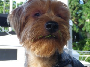This little Twelve-pound Terrier Terror has taken over my life. First of all, they told me he was a runner and I’d never see him again if I ever let him get away from me. What they didn’t explain is that he is also an escape artist. I’ve tried every single type of harness made and the little guy just turns around, backs up, folds up his shoulders, almost like he’s dislocating something à la Harry Houdini, he slips right out of the harness. After filling up a boat locker with half a dozen different harnesses, I finally found the best one, and now he has almost chewed his way through it. I’ll be back to the boutiques again soon.