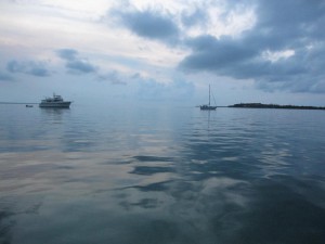 That was the last thing I wanted to do. So Mike got his engine running again, and we pressed on. Some 20 some hours after leaving Fort Lauderdale, we anchored off Mangrove Cay and spent the night.