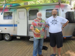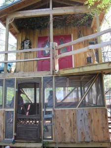 Our first stop was in Columbia, Alabama where we visited with former sailor and writer Gerald Dowling. Gerald sold his boat a couple of years ago, bought an Airstream and a lot on the Chatahoochee River, and settled down to write and enjoy life. He built a treehouse outside his trailer, added a walkway, and began his new life. Here are a couple of pictures of his homestead: