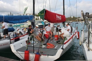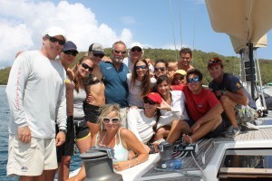 The first day of racing, I was already committed to going out on the press boat, so I wandered down the dock with the rest of the crew and climbed aboard our sweet ride – a lovely little Hinkley picnic boat. The St. Thomas Yacht Club really knows how to treat the press right. Captain Benji was our skipper. That first day as we were racing to keep pace with the lead boats on the spinnaker run down the south coast of St. Thomas, I asked Benji what our speed was. We were doing 16 knots and the lead boats were running away from us! My heart was racing from the excitement of watching the awesome display of talent and power, and I couldn't wait until I could get on a boat and sail.