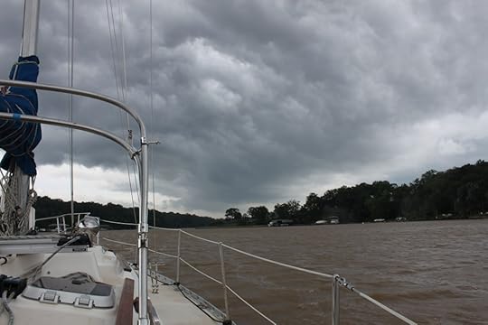I was thrilled to have someone to talk to, so I unloaded on him. "Well," I said, "while I was in Solomons, I blew the main oil gasket on the engine and had to have it replaced, and then sailing up the bay, I executed a controlled gybe and a block on my mainsheet traveler disintegrated, then when I tried to lower my headsail in anticipation of the hurricane, I discovered my jib halyard has jammed at the top of the mast, and I had to go up in the bosun's chair to undo the shackle to lower the sail, and it appears that I have alternator problems again because my batteries aren't charging when I run my engine so I've had to turn off my refrigeration." I paused to take a breath.