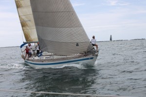 Light air and a heavy boat means racing around buoys at 4-5 knots, but the crew was gifted and we managed a mid-fleet finish. And a la Einstein, I got bit by the sailboat/relativity bug that makes a slow sailboat race damned exciting.