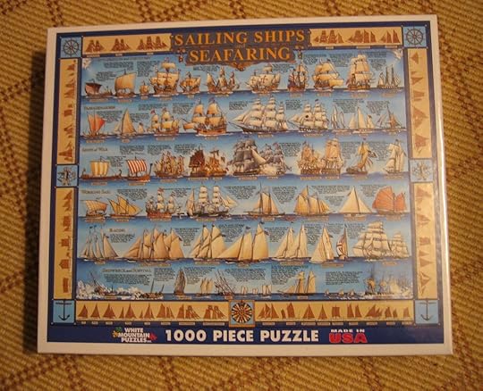 It's been hectic for the last few weeks, between getting the last book to print, preparing to launch into the next big project aboard the boat, and travelling, so I haven't been online much and this post is coming to you from on the road, presently on a stop-over with family in Cape Cod. Yesterday I needed a few odds and ends, so my daughter and I ran down the road to the local hardware/home and garden store, and in the process we came across a jigsaw puzzle we couldn't pass up. Like of much what is aimed at the tourist crowds that surge through here in the coming months, it has a nautical tone: in this case 'Sailing Ships and Seafaring'. Row upon row of sailing ships of every variety imaginable make up the illustration, from exploration and discovery to passage makers, ships of war, working sail, racing, and even shipwrecks and survival, and each group shows specific examples from through the centuries from all corners of the world, with short explanations for each. Phoenician traders, Viking knarrs, Polynesian canoes, Chinese junks, Arab dhows, Spanish Galleons, whalers and grand tea clippers. The puzzle's border shows a range of smaller craft from catboats and sloops through to topsail schooners, brigantines and barques.