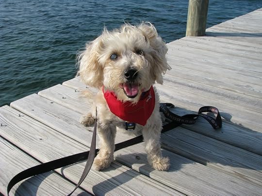 I've noticed this is another common thread here at Write on the Water. Quite a few of us have boat dogs. CE has shared with us the photo of her crew Moxy and Rex awaiting shore leave, and Mike has shown us Belle enjoying the sunset on the foredeck, in her holiday gear, and as a bathing beauty. Many of us who love the life of messing about in boats, choose to do so with a good boat dog.